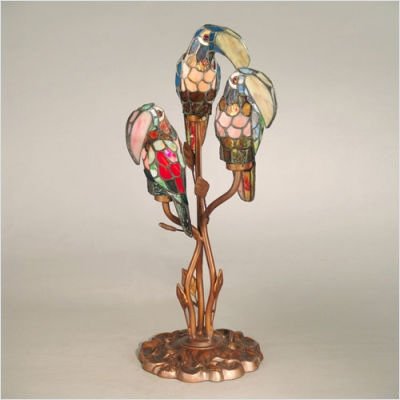 Dale Tiffany Three Parrots Table Lamp Feature Metal Base Antique.